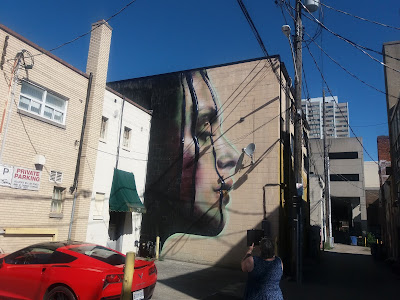 When you exit the tunnel, take a left and a left. Find yourself a nice parking spot on Ouellette for a fabulous urban art exhibit!