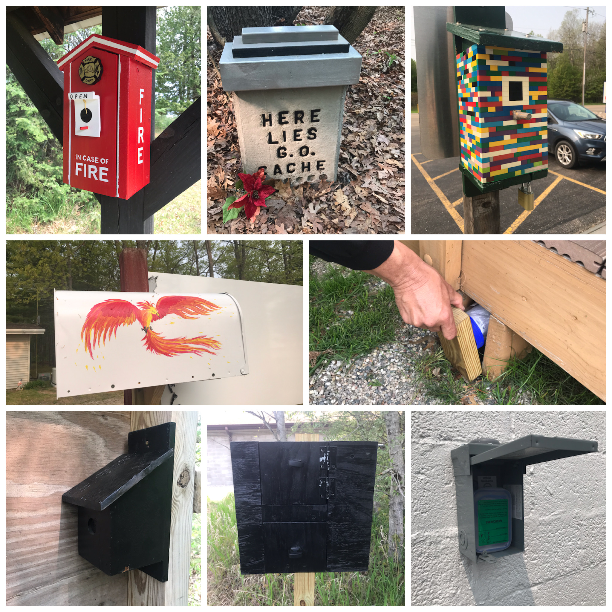 SPOILER: Here are some of my favorite cache containers. Many of the West Branch caches were hand-painted by the community.